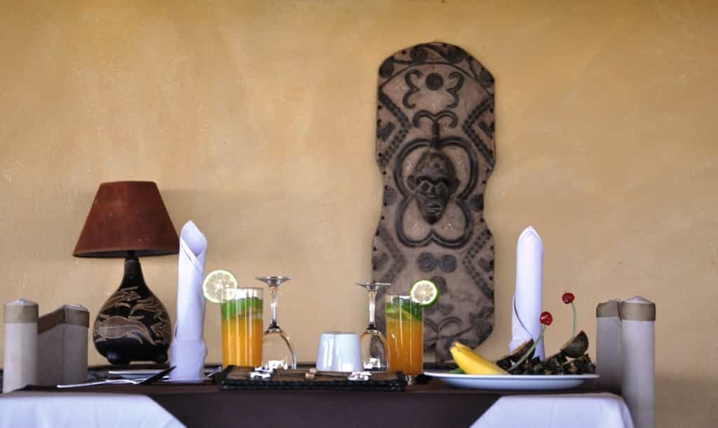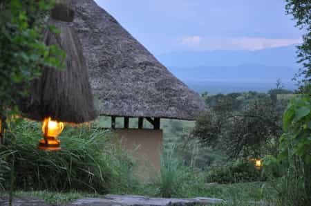 A soaring thatched roof shelters the open-plan lounge, dining area and bar, with views of the landscape reaching to the dramatic Rwenzori Mountains in the distance. The small, sheltered swimming pool in the gardens is perfect for a post-trek plunge. The meals are good, wholesome fare made using produce from the lodge’s garden, and you really shouldn't pass up the chance to enjoy Uganda’s locally grown coffee. in the evenings, tap your toes in time with the flamboyant traditional dancers.