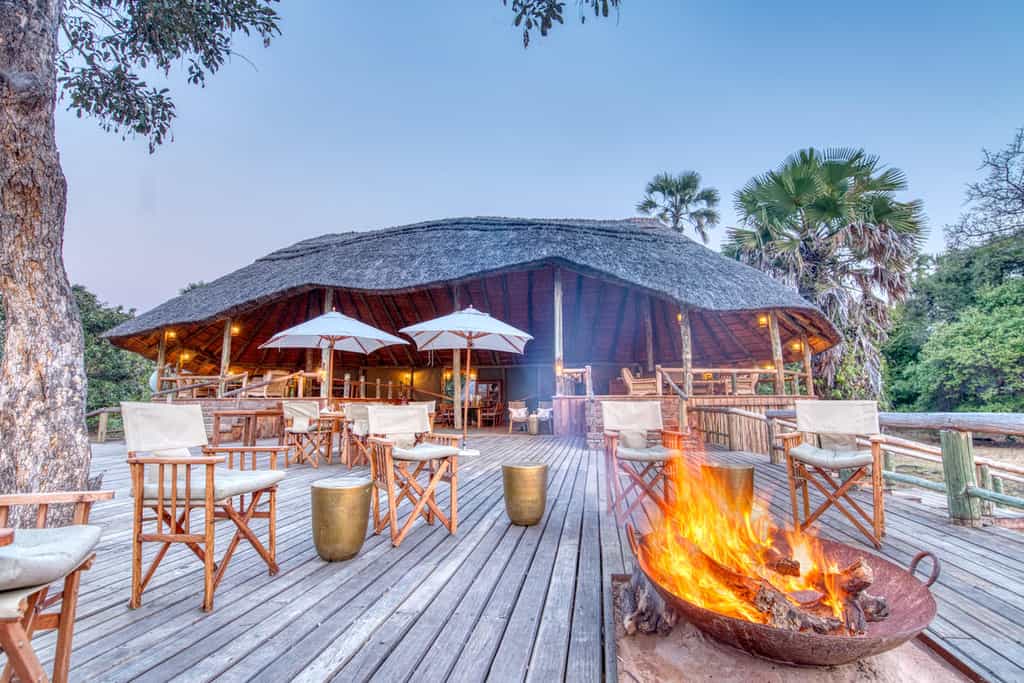 On the edge of a thick grove of mature trees, the thatched, two-tier main lodge rises sentry-like above the plains. Recently renovated, its broad open-plan lounge and dining area is breezy and casual, with plenty of comfortably cushioned seating. The deck is large with views to the horizon (no other humans in sight!), and is often used for meals and evening drinks, which are served around the mobile fire pit. A new lower level and swimming pool are planned.
