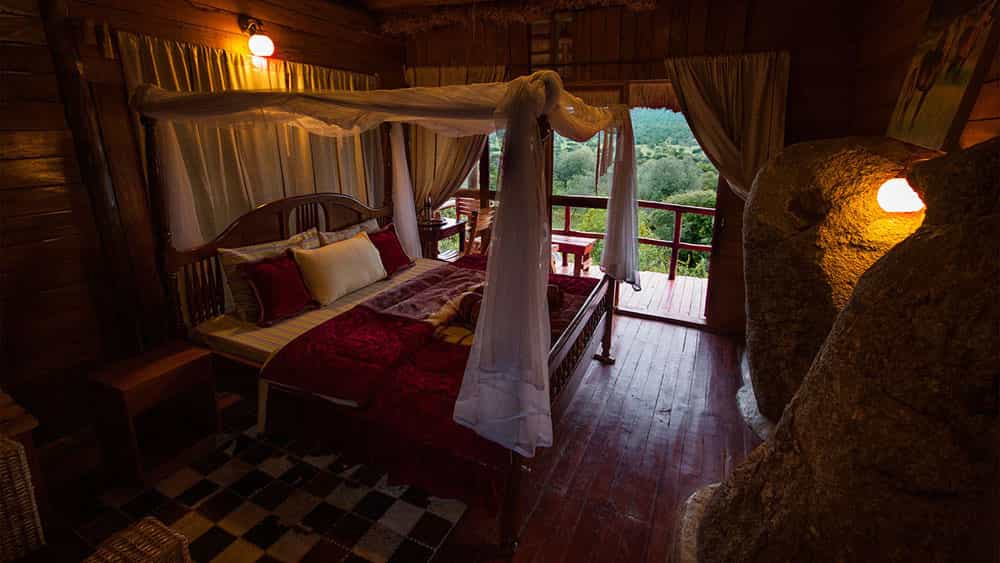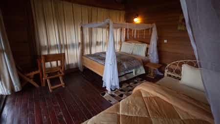 Like the main areas, the decor in the 10 cottages is comfortable if slightly worn. The same can be said for the hot-water supply, which is also intermittent. Nevertheless, if you are looking for a comfortable and decent stay, Mburo has more than enough to offer. Raised on wooden platforms with thatch roofing, each of the cottages has an outside balcony where you can view the passing wildlife, netted king-sized bed, and an en-suite bathroom with (sadly intermittent) hot water.
