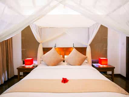 Treat yourself even more with a treatment at the in-house spa. The spa is built upon stilts over the sparkling lagoon. The combination of the soft sound of the waves and the expert touch of the massage therapists is guaranteed to send you into a state of pure bliss.