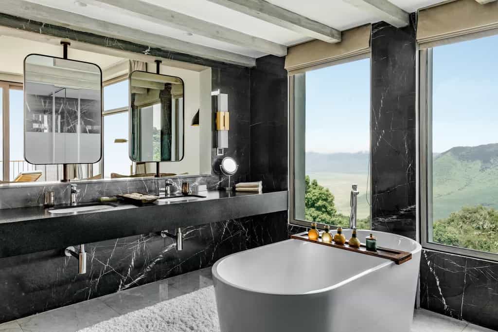 Rebuilt with sustainability at its core (solar power & on-site water bottling), the lodge achieves a surprisingly boutique feel despite its size. Open-plan lounges showcase pale woods, hand-woven rugs and colourful Maasai artwork, whilst floor-to-ceiling windows frame that show-stopping caldera view. Two gourmet restaurants deliver international and African-Asian fusion cuisine – think perfectly charred steaks alongside coconut curries – and the outdoor terrace is where you'll want to spend every waking moment. There's also a gorgeous heated infinity pool, a spa offering African-inspired treatments, a 24-hour gym, and a boutique stocked with locally sourced treasures.