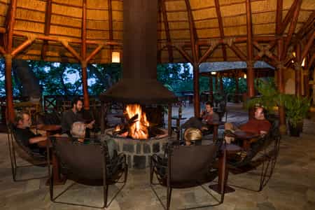 Tucked into the densely forested hillside and sheltered by swaying trees and long-fingered vines, the main lounge and dining areas at Mikeno are really rather comfortable. Inside, you’ll find a good bar and a roaring fire to keep things snug whilst outside a stilted wooden deck offers up breath-taking views across the jungle-scapes to the Nyiragongo and Mikeno volcanoes. Depending on the ferocity of the chilly mists, meals can be taken inside under the thatch or outside under the stars.