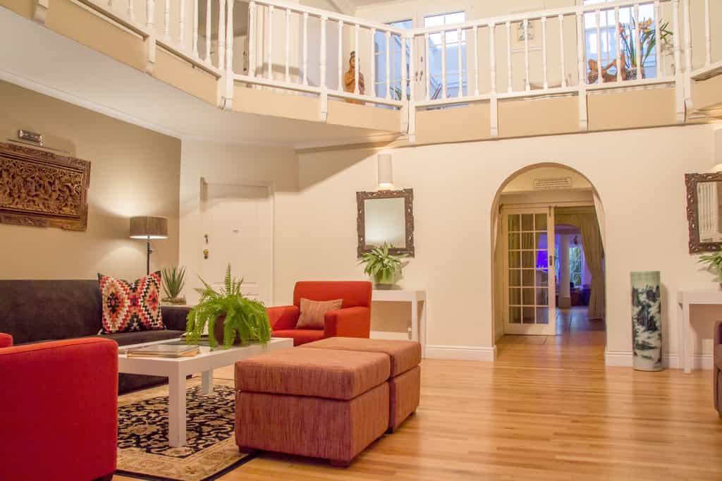 The imposing Georgian-style façade gives an immediate feel of the interior, which is spacious and elegant, without being pretentious. A number of quiet lounge areas spill out on to the lush gardens, alive with birds and butterflies. The light-filled Lemongrass Restaurant serves delicious breakfasts (excellent smoked salmon and blue cheese) plus a cooked breakfast. Dinners highlight fresh seafood and local produce. The shady outdoor terrace is a great spot to enjoy breakfast or sip sundowners.