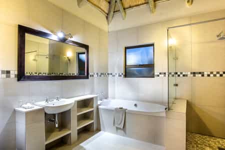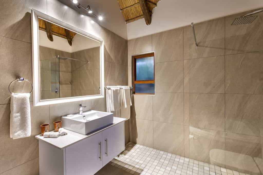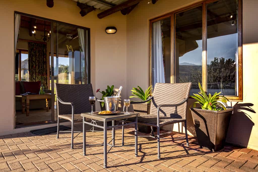 The large thatch-roofed lounge has comfortable sofas and plenty of board games for a spot of entertainment. The decor is more relaxed than super chic, but the room is cosy, with a crackling fireplace. The dining room (with underfloor heating and fireplace) and adjacent covered patio have a dozen tables each – perfect spots to enjoy delicious cuisine and supreme views. Relax on the veranda, or head to the pool or tennis courts, or to the dams for some fly-fishing.