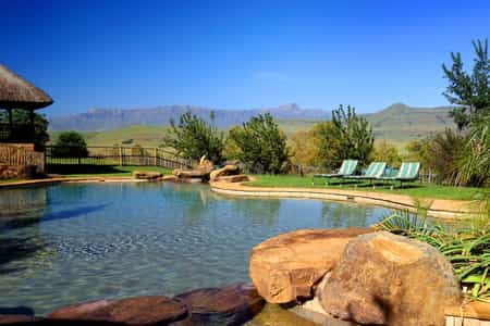 If you fancy some epic hiking, mountain biking or horse riding, then you've come to the right place. Start by exploring the 1000-hectare estate, then venture into the Royal Natal National Park (part of the uKhahlamba-Drakensberg) to get up-close with the Amphitheatre and Tugela Falls. Along the way you may pass reedbuck, rhebok and eland. Looking for birds? There are plenty. The nine-hole Amphitheatre Golf Course is nearby, and a tennis court and two trout-stocked dams are on the property.