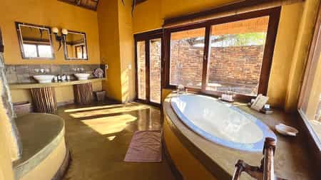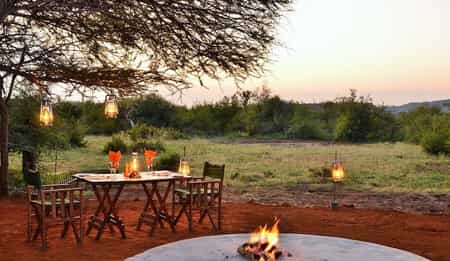 Five luxury bush villas accommodate 10 people, and a single luxury family villa sleeps six in three rooms. The bush villas, set around a swimming pool, all have aircon, ceiling fans, gas fireplaces, slick en-suite bathrooms, outdoor rock showers and private decks. Foldaway doors and windows make the most of the view. The family villa has a well-equipped kitchen, a lounge leading to a private deck, and a plunge pool and boma. It can be booked on a self-catering basis.