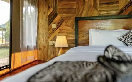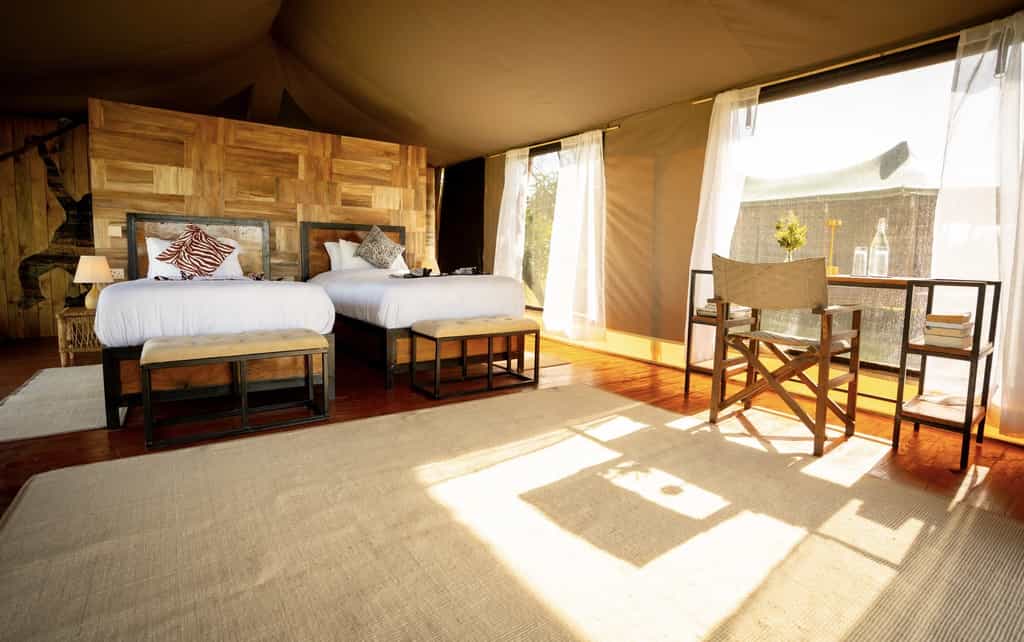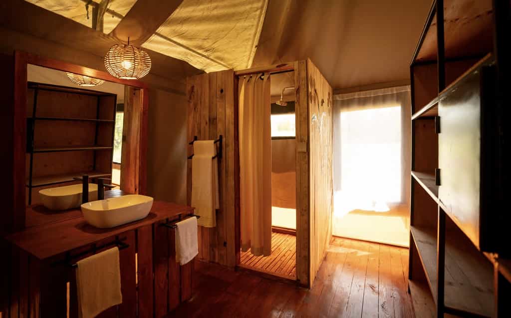 The camp feature 12 spacious tented rooms, configurable as doubles, twins, or triples, along with one exclusive family tent, offering comfort and flexibility for a variety of travellers.