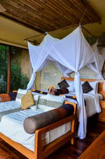 You may want to just relax poolside, soaking up the view, or enjoy a massage at the spa, but there's also plenty to do in the pretty surroundings. From hikes through monkey-filled forests, to horseback rides to nearby crater lakes and stunning waterfalls, there's lots to keep you busy. You can also learn the ropes of coffee production or kite making (it's especially popular with the kids), or head into Munduk on the complimentary shuttle for a stroll in the botanical gardens.