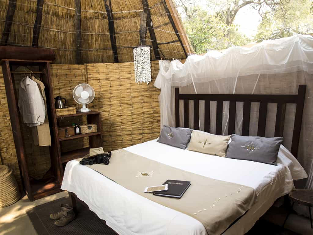With only four reed- walled and thatch roofed chalets able to accommodate a maximum of eight guests this is a wonderfully intimate camp relishes in creating an intimate space for you to relax in. Large outdoor showers, light and simple African decor touches and an array of open windows, covered with gauze, frame the outside bush. Piping hot showers in the evenings after game drives and shaded verandas with chairs overlooking the riverbed complete the simple, rustic atmosphere.