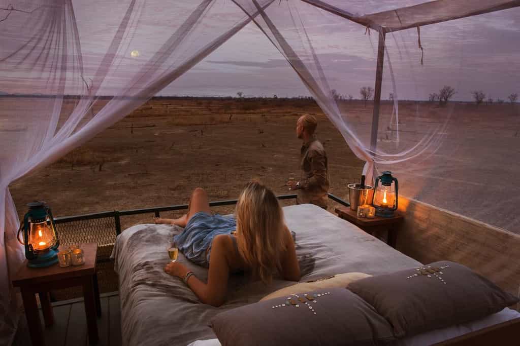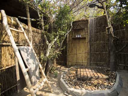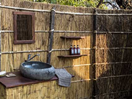 The main dining area is set underneath a large ebony tree entwined with vines, a beautiful rustic bar envelops the trunk of a large tree at its centre with views over the nearby river. Sandy floors and reed walls create a sense of back to the basics, all amenities met without the fuss and frills. In the camp it's not about opulence but more the connection with the bush that you are here to experience, and you won’t be disappointed.