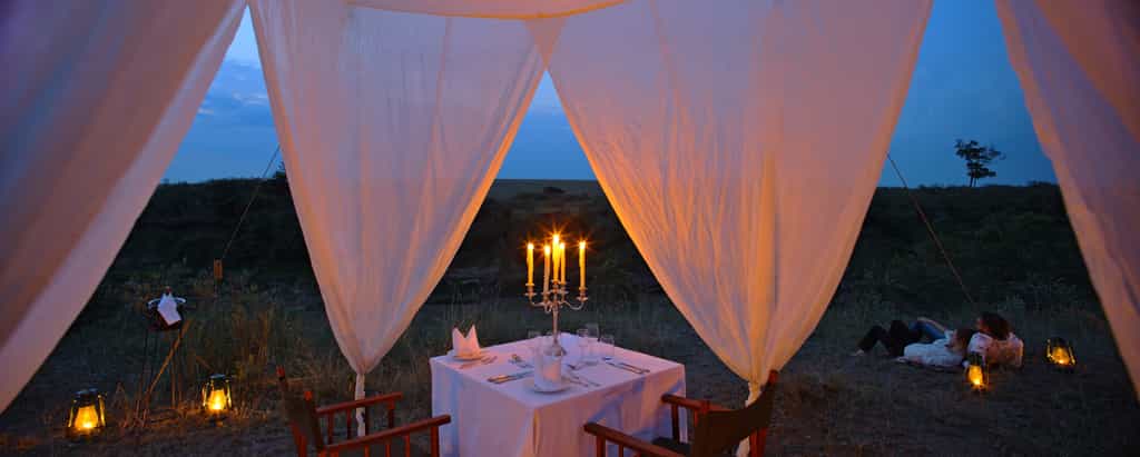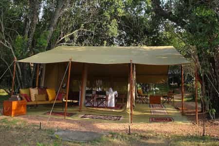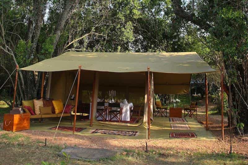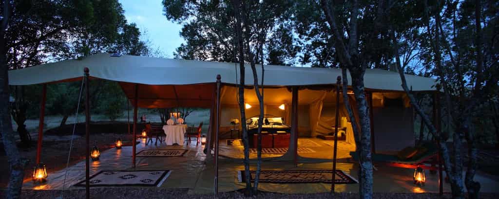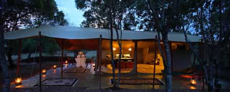 Naibor Wilderness has its own separate mess and dining tent positioned near the Talek River. A simple space, the central mess tent has a dining table, floor cushions, large patterned rugs undefoot, comfortably cushioned wrought-iron sofas and a small library. In the evening, the camp takes on a romantic feel with pathways lit by hurricane lanterns and the sounds of the bush. Guards are on hand to make sure the creatures don't get too close for comfort.