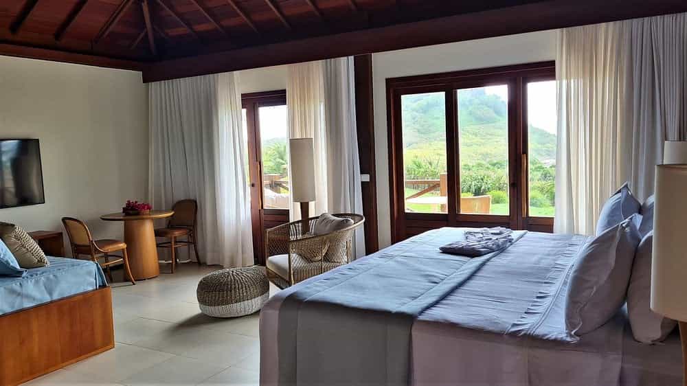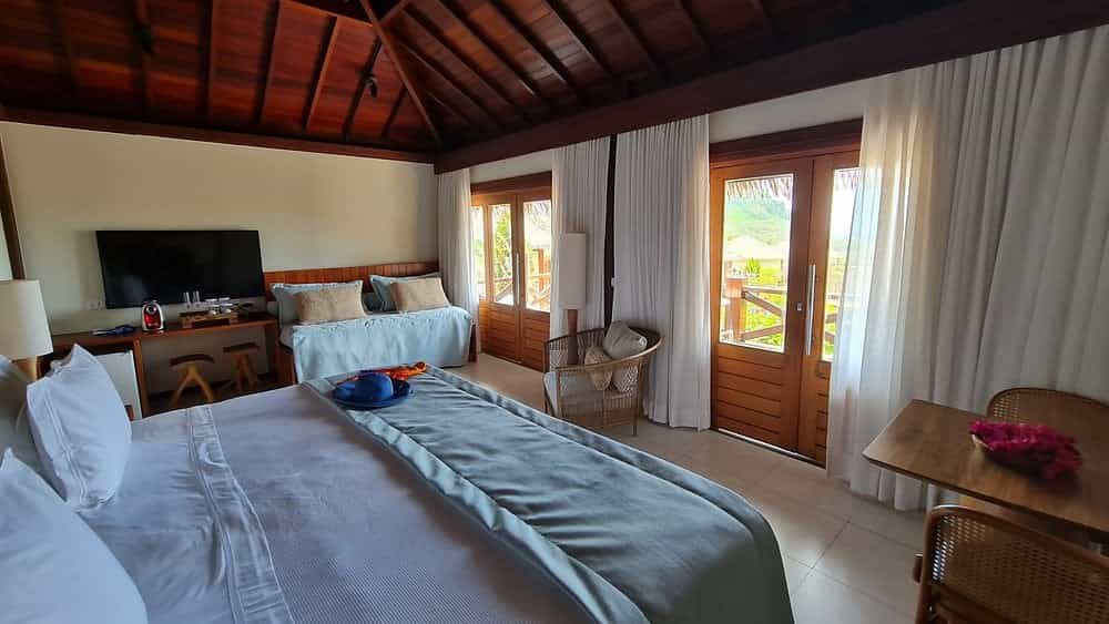 Eight bungalows and two apartments are perched on stilts, creating the sensation of floating high above Sueste Bay. Each is individually decorated with customised details that reflect the NANNAI brand's signature style - think cosy beach house but with plenty of added glitz. All rooms have a private balcony with swaying hammocks and panoramic views of the bay, some stretching all the way to the Chapéu and Cabeluda islands. There's also aircon, TVs, minibars and espresso makers, and in bathrooms, beautiful rainfall showers and fluffy robes.