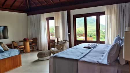 There are plenty of beautifully designed spaces at the NANNAI with cosy nooks for relaxation and privacy, an outdoor swimming pool, poolside bar, and three restaurants serving everything from tropical breakfast to fine dining experiences. In fact, the restaurants consistently rank among Fernando de Noronha's finest, offering stunning bay views alongside cuisine that celebrates local ingredients and flavours. The elevated wooden walkways create seamless integration with the natural environment and solar energy, wind generation, rainwater recycling, and organic gardens are all part of its comprehensive sustainability program.