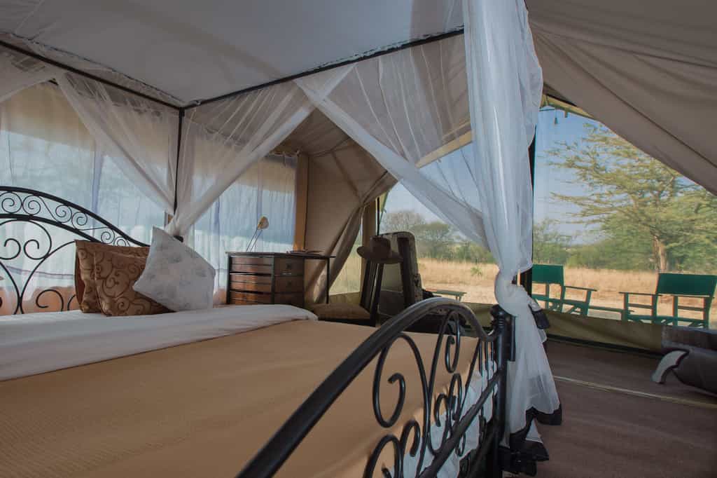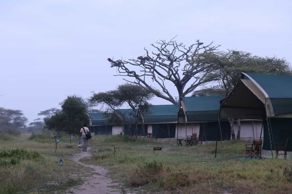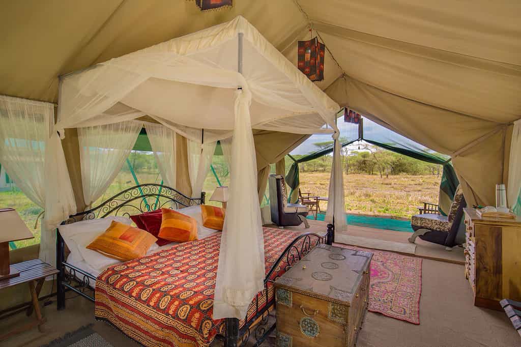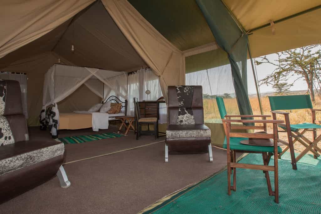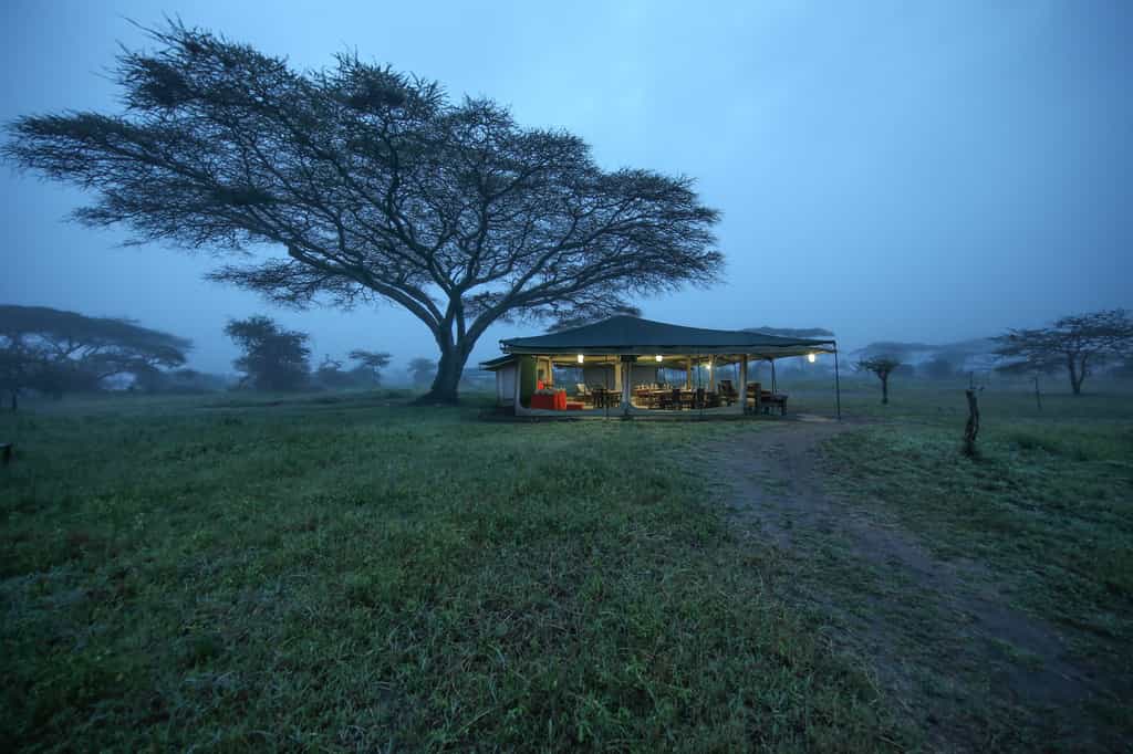 Nasikia Mobile moves between two sites in the Serengeti, one in the south, where you can see the new calves, and another on the northern plains, from where you can witness the well-recorded but nevertheless astonishing spectacle of thousands upon thousands of wildebeest hesitating, then surging forward to flail across the croc-infested Mara River. The camp's central area has a lounge tent with a tranquil library and a dining tent for sumptuous bush cuisine created by the camp's chefs.