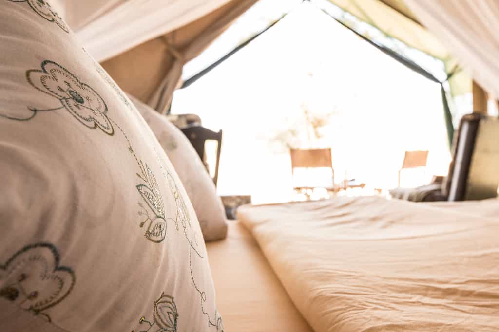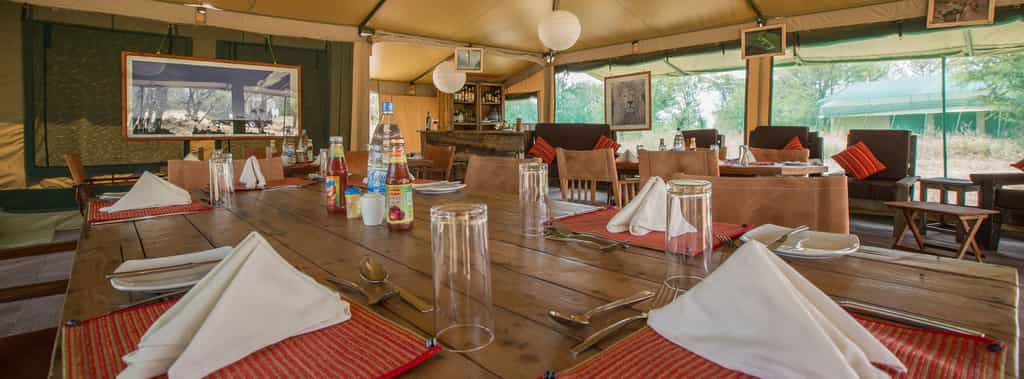 The camp has eight to 12 safari tents, depending on the season. All are made of heavy-duty canvas, are solar-powered and have been simply yet elegantly furnished in muted colours. Each has an en-suite bathroom with a flush toilet, proper beds and a patio area for relaxing. Shower under the African skies beneath a 20-litre shower bucket put up on a pulley system when needed.