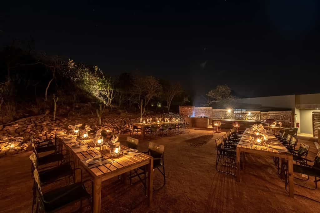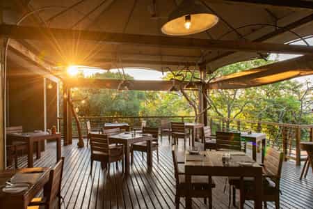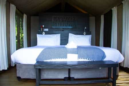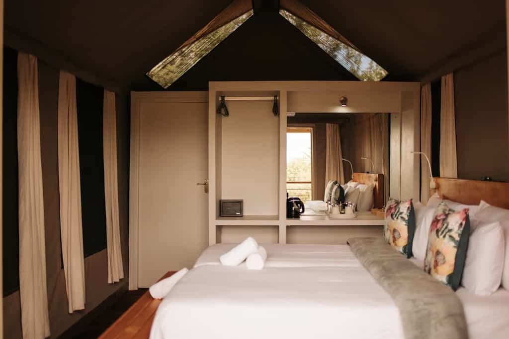 Each of the 24 tents sits upon 50 square metres of elevated wooden decking, all facing east. All offer unobstructed views across the valley and comfortable outdoor sitting areas – it's not uncommon for a nyala or giraffe to saunter past. Each room sleeps just two guests in king-sized beds, which can be made into two doubles (no single beds can be added). Tents have all the necessities, from en-suite bathrooms with a shower to a ceiling fan and minibar.