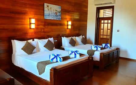 A small boutique resort that offer a tranquil stay on Nilaveli beach. All the rooms are in wooden cabanas on the beach itself. Step out from your room, walk on the pristine beach sand, dip in the warm water of Indian ocean. Rooms are built on rustic wooden huts. Each room is beautifully furnished with a private balcony overlooking the sea, a seating area and ironing facilities.