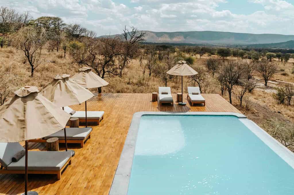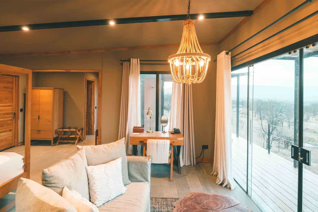 This new charming tented camp is inspired by the safari style neutral colours and offers intimate engagements with the natural surroundings. The interiors are modern and contemporary in style with elements of antique brass to create different textures and depth. The main areas overlook a breathtaking scenery of the vast Serengeti plains, and cozy fire place & infinity swimming pool. They are completed by organic furnishings, light filled structures, and elegantly float between the endless plains and African sky.
