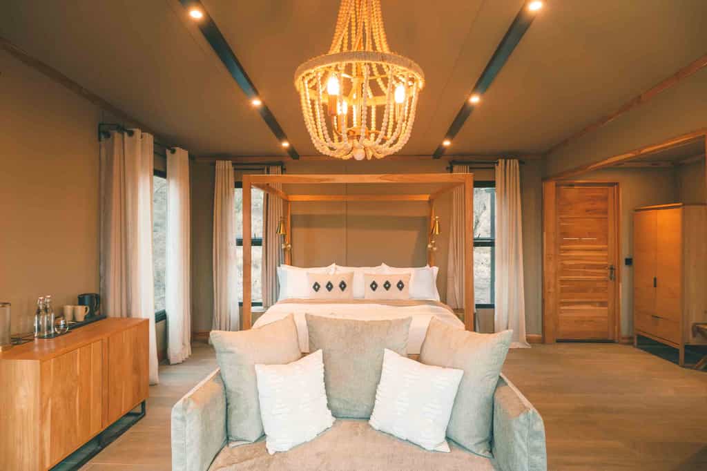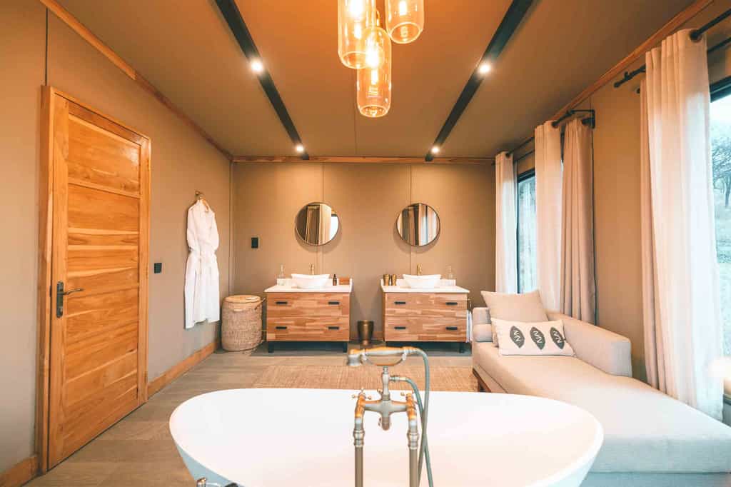 Each tented suite evokes a richness and has been cleverly styled to ensure guests enjoy a stunning panoramic view. The suites each have a bathtub, outdoor shower and a private verandah, where they are immersed in nature and have the unforgettable experience of being in the middle of this vast wilderness.