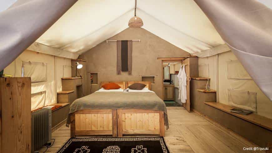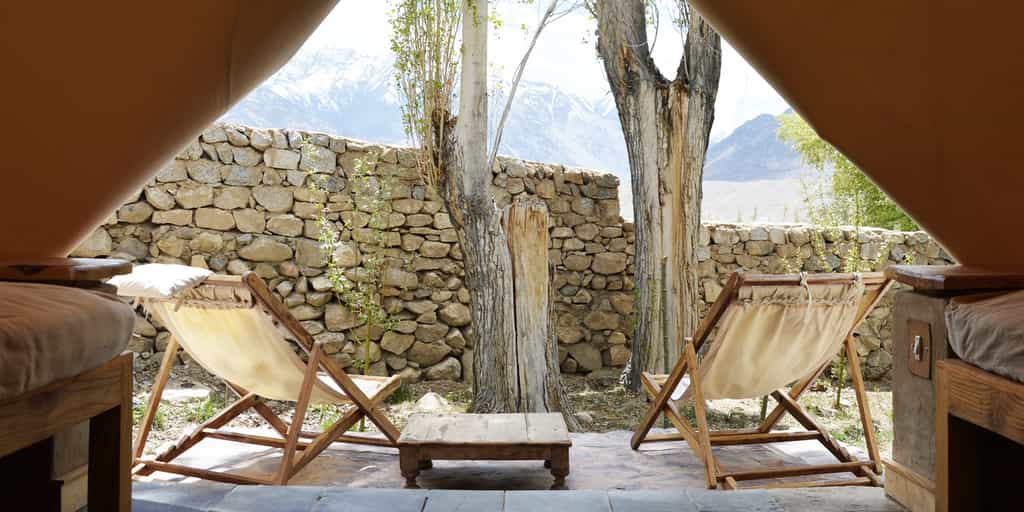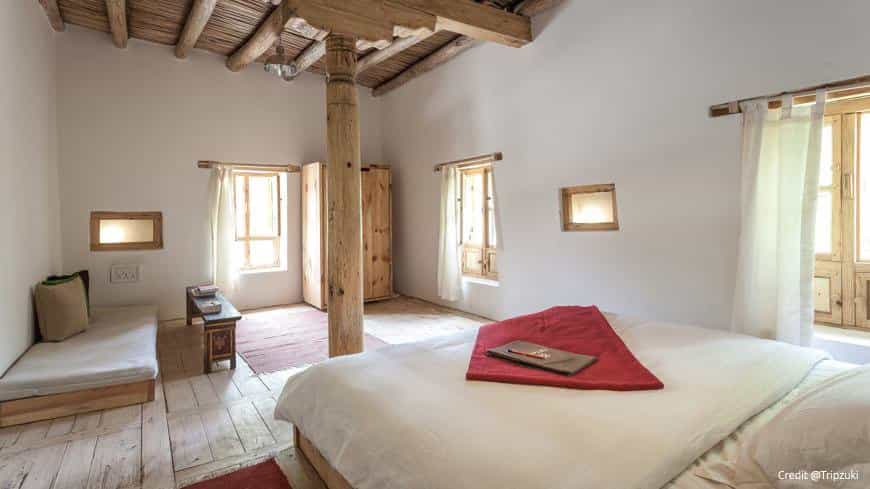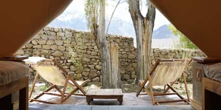 For your stay, choose between one of the cosy indoor heritage rooms or a fabulous Rajasthani tent in the garden. The four bedrooms in the main building all feature twin or king size beds, private ensuite bathrooms and hot water warmed by a solar panel. The seven tents are sprinkled through the nearby orchard and have three separate compartments: a small entrance room, either for relaxing or for the kids if required, a super-spacious bedroom, and private bathroom with the best showers in Ladakh.
