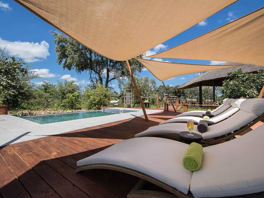 Nokanyana overlooks the confluence where the Khwai and Mababe Rivers meet, creating a beautiful environment to relax and watch the wildlife pass by. Seven luxurious tents and three family units are positioned on the banks of the Khwai River where an abundance of animal life can be found - from giraffe to leopards. Rooms have been built to ensure that guests have a panoramic view of the bush around them. Game viewing from the comfort of your room, or whilst enjoying a dip in the pool is quite an experience. Full days out or shorter activities close to camp can be arranged depending on how you would like to spend the day.