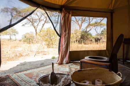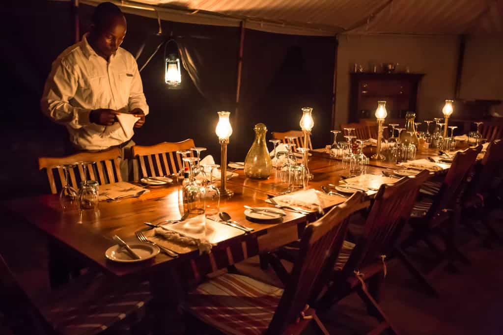 The six Meru-style tents are simple and unpretentious canvas affairs, but they’re large and spacious and have everything you could want. Beds are comfy and hurricane lamps, soft kilim rugs and old safari chairs feel perfectly old-fashioned. In the en-suite bathrooms are tin basins, eco-flush loos and bucket showers with hot water brought to you whenever you need it. And of course, each tent has a small, private veranda to take in that all-important view.