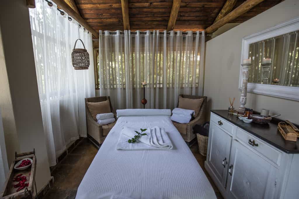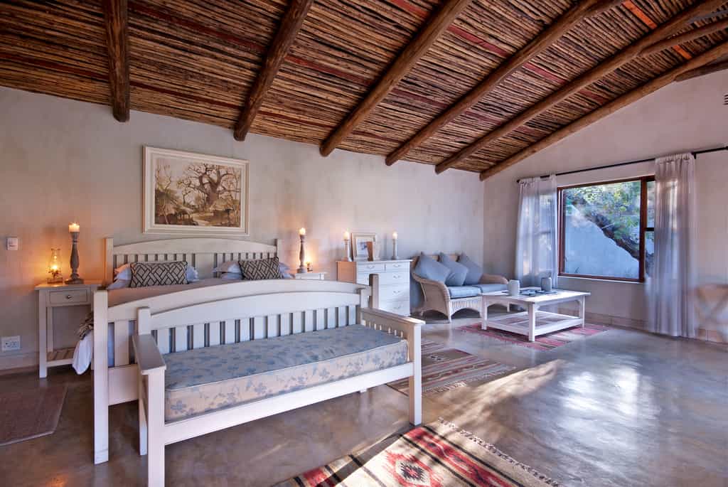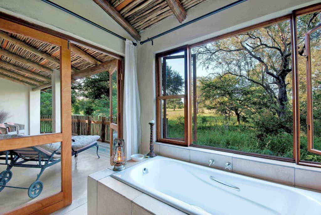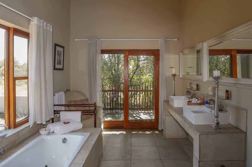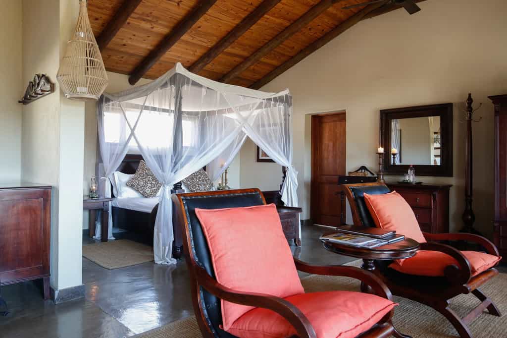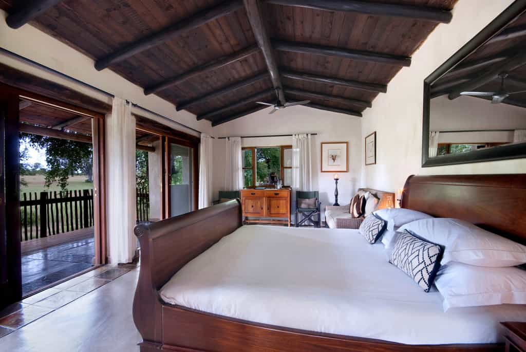 The nine very large suites are in keeping with the rest of the lodge, built using the same materials and echoing its ultra-comfortable style. Each has mosquito netting on the windows and doors, double or twin beds, leather couches and an en-suite bathroom with a tub and shower (there's an outdoor shower and tub too). Lighting in the bedrooms is fueled by paraffin in true African style, although the rooms are equipped with charging points and air-con. Each suite leads out to a private viewing deck from which to gaze at the bush.