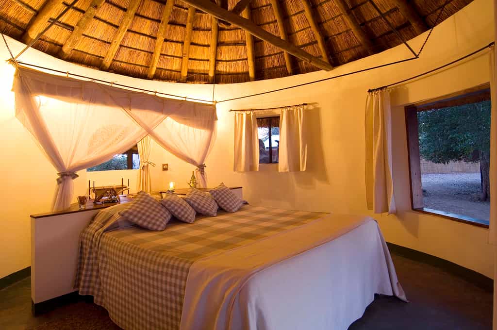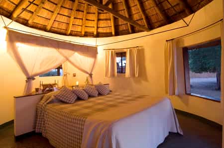 Due to their status as protected monuments, the 6 brick and thatch rondavels have changed little since the 50s unlike the interiors, which have benefited from lots of TLC. Expect pale linens, whitewashed floors and state of the art air cons in the bedroom and open-air bathrooms at the back with plenty of hot water. Outside each hut is a raised seating area with safari chairs overlooking the river, just calling out for a G&T and a good book…