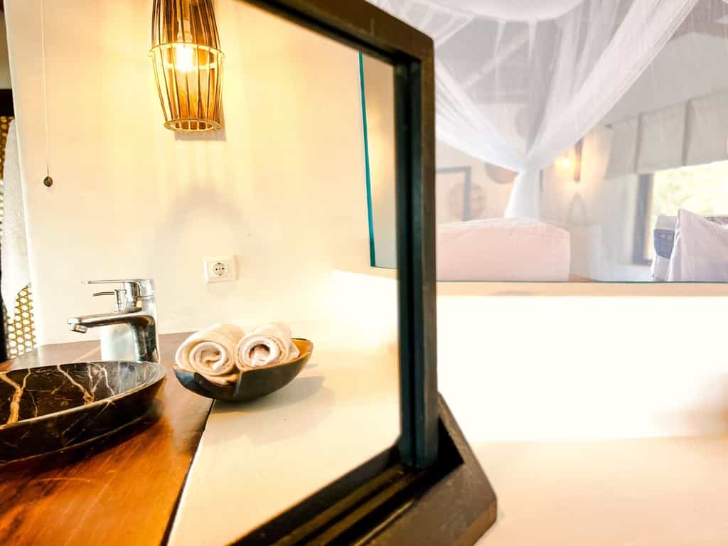 There's loads to keep you busy here; weeks could easily fly by. The beach in front of Nuarro is a short walk down the forested hill and from here you'll find kilometres of yellow sand to comb for shells and several rock pools to scour at low tide. Snorkelling and diving can be done from the shore at four different sites, and there are another three sites a short boat ride away. The diving here is world-class, with night dives, flourescent dives and rebreather dives on offer. Excursions to the local village can be arranged, either on foot or by bicycle, which will likely yield some very warm welcomes and enthusiastic photography sessions.