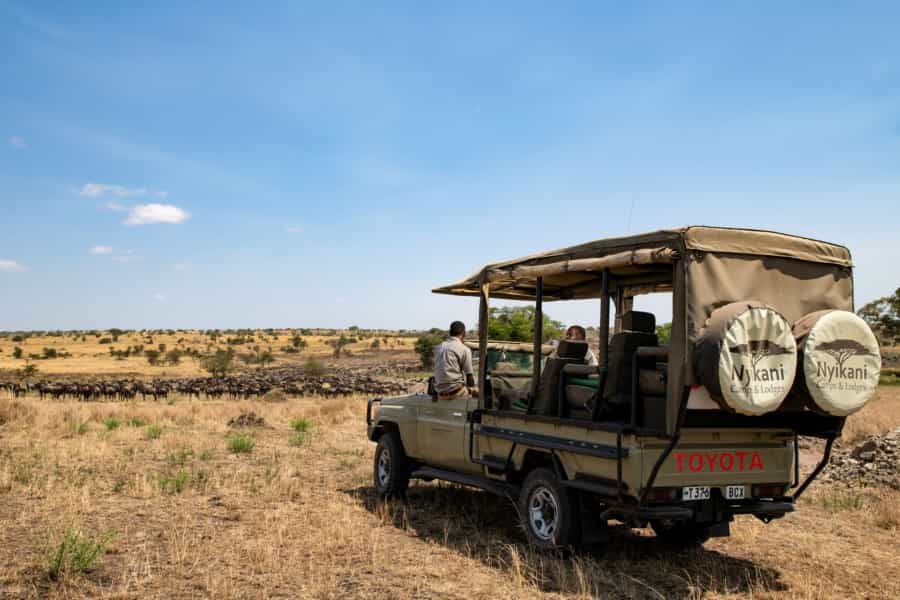 Those who know little about the bush are still likely to have heard of the Serengeti and its annual Great Migration. It's a dramatic, often televised event, and Nyikani Camp sits at the intersection of it all. Set up in the busy migratory region of northern Tanzania's Mara section of the Serengeti, this small mobile camp takes advantage of key river crossings from late May to mid-November, when wildebeest and zebra migrate for more fertile grazing. With just eight canvas tents, the in-camp experience is much like those classic safaris featured in travellers' tales. This is high adventure, Serengeti-style...