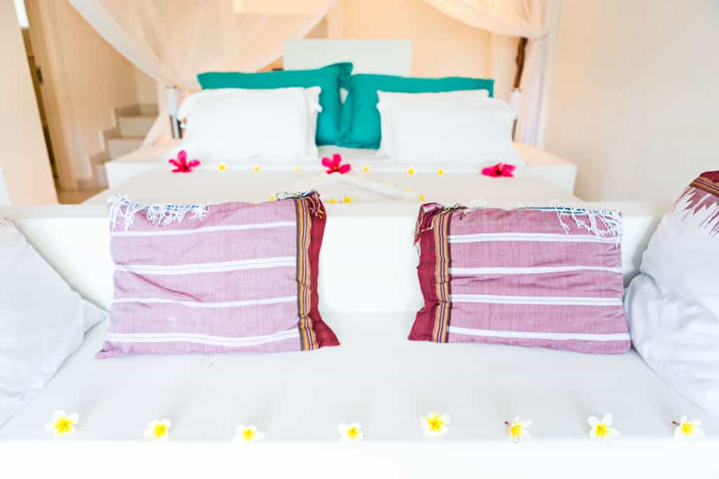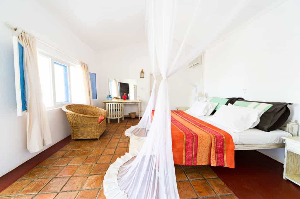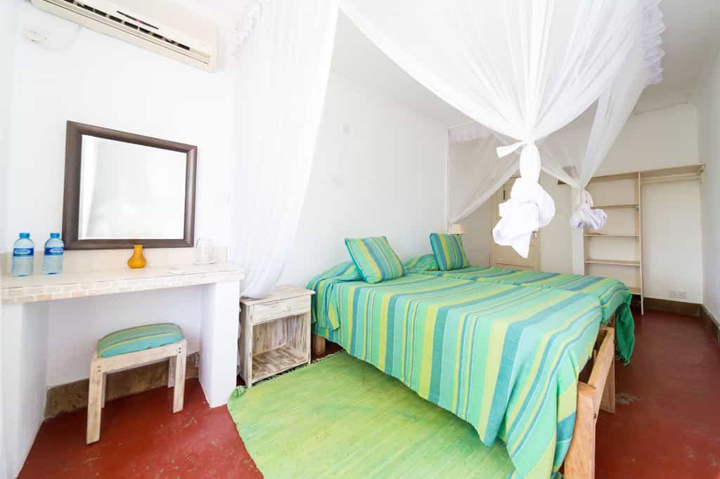 There are 39 rooms in total, 26 of which are standard rooms with varied sleeping configurations. These rooms are simple but spotlessly clean, with aircon, mosquito-netted beds and basic en-suite bathrooms. There's also a family unit with two rooms, and a more spacious suite in the garden (with indoor/outdoor seating areas, a fridge and a bathroom with tub). Ocean Cottage is self-catered, with four bedrooms, a spacious lounge, a fully equipped kitchen and an outdoor dining area with a barbecue.