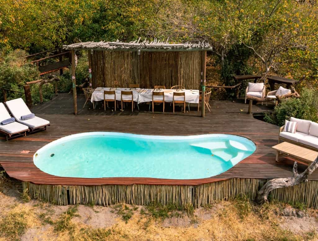 All set out in a very open layout the main area consisting of the bar, dining room and fireside area to enjoy a real connection with the bush. The tree house affords a gorgeous view over the Xudum river and is the perfect place to catch the breeze with a book or a siesta in the afternoon. After a ride you'll probably be opting for a refreshing dip in the pool, a perfect spot to keep cool and look over the river and plains at the passing game.