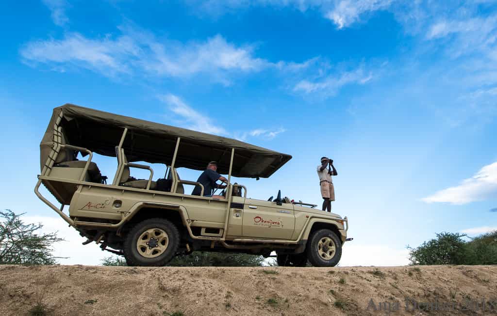 Most guests visit Okonjima to learn about the highly successful AfriCat foundation, a not-for-profit organisation set up to support long-term conservation of Namibia's large carnivores, now the largest leopard and cheetah rescue and relocation programme in the world. Activities include tracking cheetah, leopard and hyenas, whilst seeing other wildlife on the reserve, San trails, self-guided walking trails, game-spotting in the night hide, birding and visits to the care and research centre.