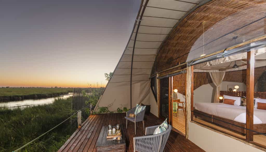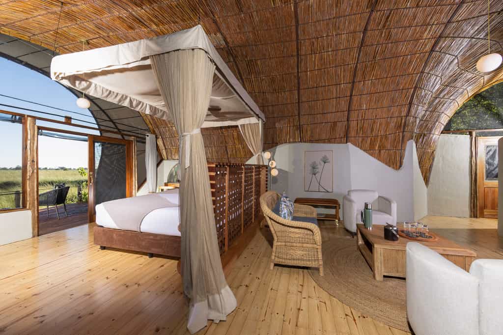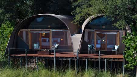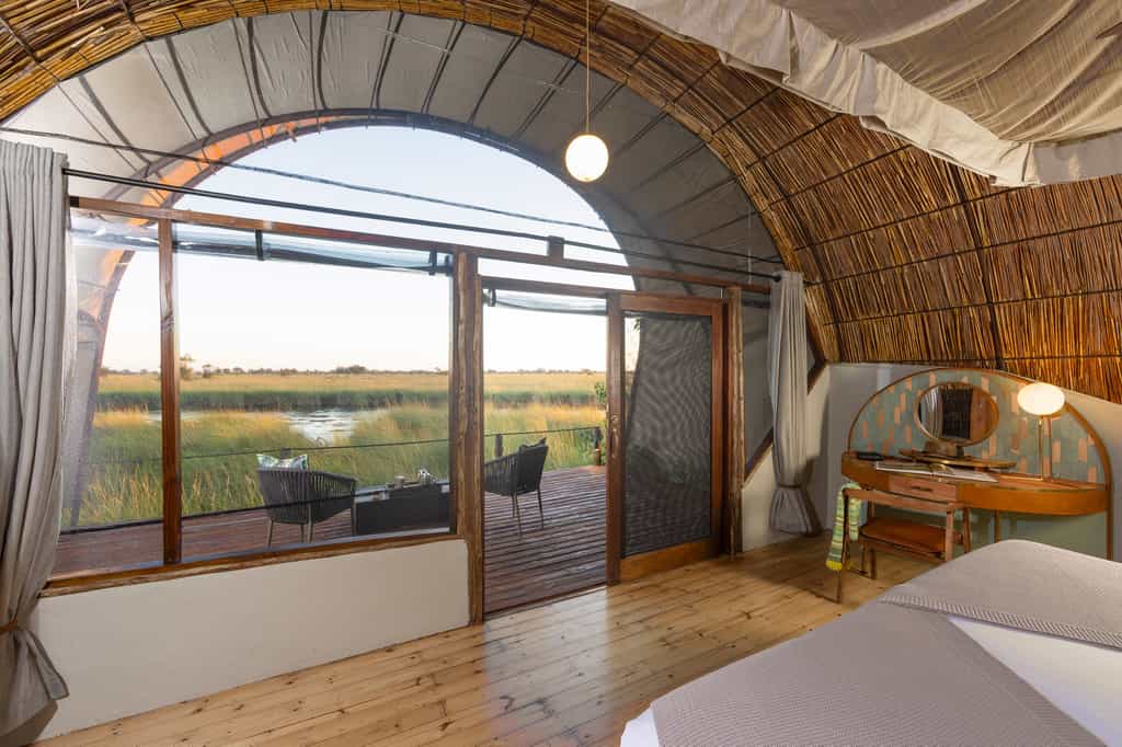 There's such an abundance of wildlife in Moremi that most of your time will be spent exploring the reserve in a safari vehicle. Motorised boat trips through the waterways bring you close to hippos, tigerfish and other aquatic life, as well as really good birding (including squacco herons, marabous and yellow-billed storks). Unwind beside the pool or on your private deck, watching the water slowly drift by. Night-time exploration of the wilderness is not permitted in Moremi.