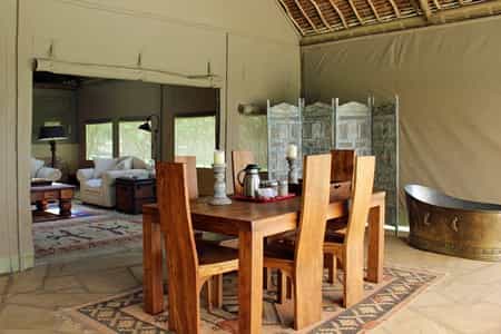 Picture three spacious tent cottages, knitted together with canvas, wood and stone - and topped with a classic thatched roof to complete the image. Ol Bobongi is a secluded camp that promises excellence in service and privacy, and there are just two tents for accommodation whilst the third is home to a rustic breakfast bar, a dining veranda and shaded relaxation spot right next to the inviting freeform pool. They are known for their service, and Sammy the chef doesn’t disappoint with her hearty meals. A cosy lounge awaits inside where you’ll also find a laptop-friendly workspace (along with a friendly pooch).