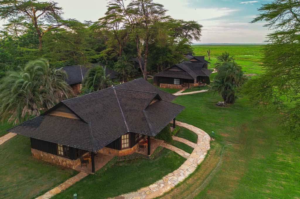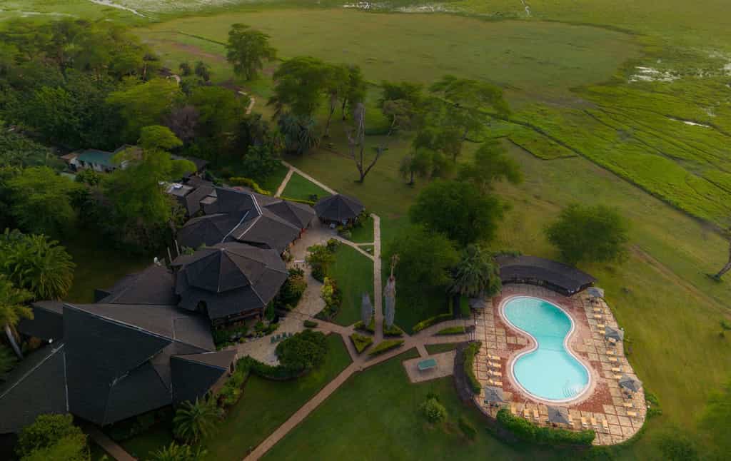 There are eighty luxury chalet-style twin or double rooms constructed from local timber, thatch and river stone, with uninterrupted views of Kilimanjaro and the surrounding wildlife-rich marshlands. All have en-suite bathrooms and private terraces. The self-contained Kibo Villa is a beautiful, sole-use cabin with three bedrooms, a roof terrace and jacuzzi. All the accommodation is beautifully appointed with a simple luxurious African style, modern amenities, and well positioned within the lovely gardens to offer a peaceful retreat.
