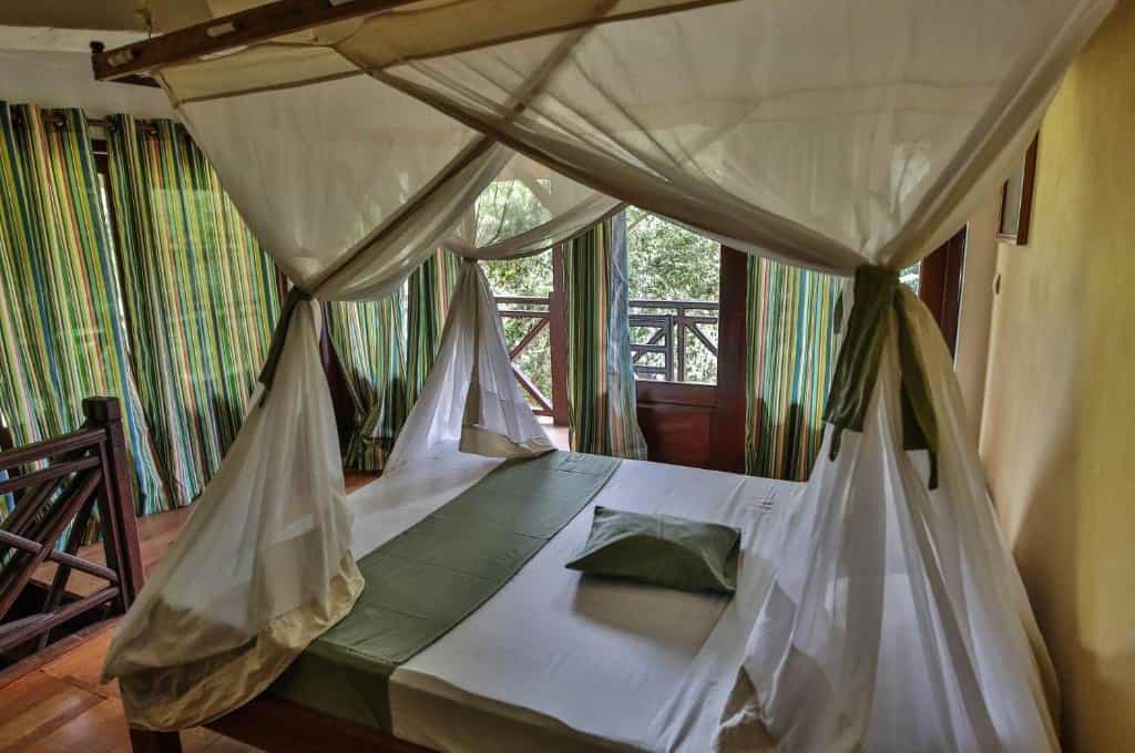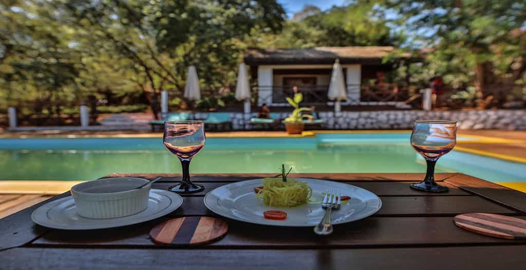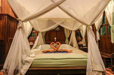 Choose a room in the main hotel or in the separate wooden bungalows, all of which are adorned with bright patterns and polished wooden furnishings, including large canopy beds. The bungalows are ideal for added privacy and come with their own pool, entrance and balcony. They also cater well to small families with space for three. The bathrooms are neat and well-stocked but the size does vary depending on your choice of room.