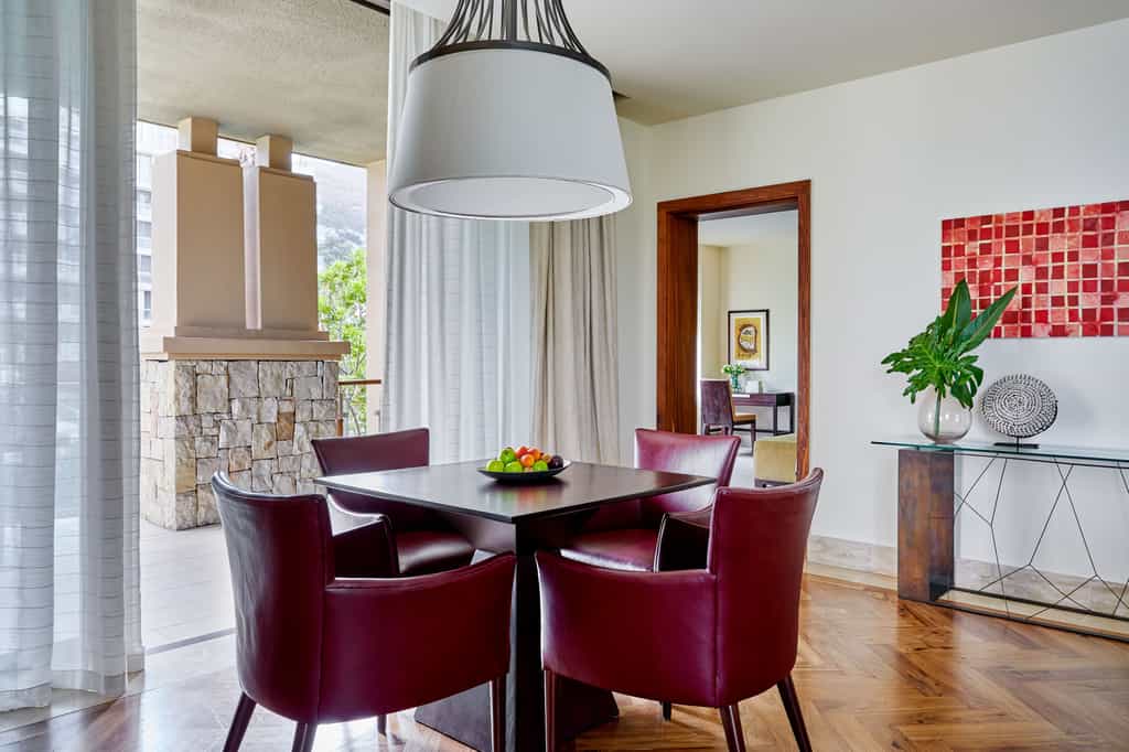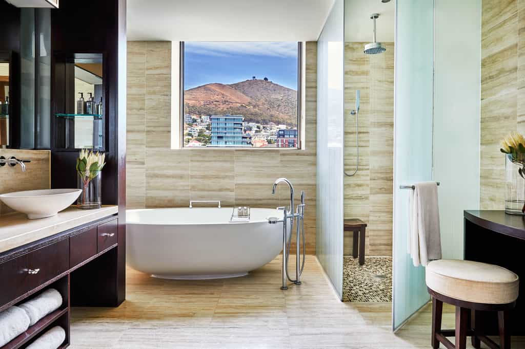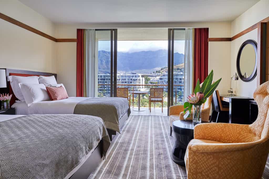 The grand entrance's polished floors and limestone walls are but a teaser for what's inside. From here, broad hallways branch out into the many spaces that this enormous, modern construction holds. Two restaurants and a bar offer unique, high-quality experiences in distinctly different settings. The garden boasts the largest infinity pool in South Africa, and innumerable shady seating areas amid lush botanicals. There's an indulgent spa, and a fitness centre, well-equipped with anything you might need to get motivated (including wonderful city views as the ultimate inspiration!)
