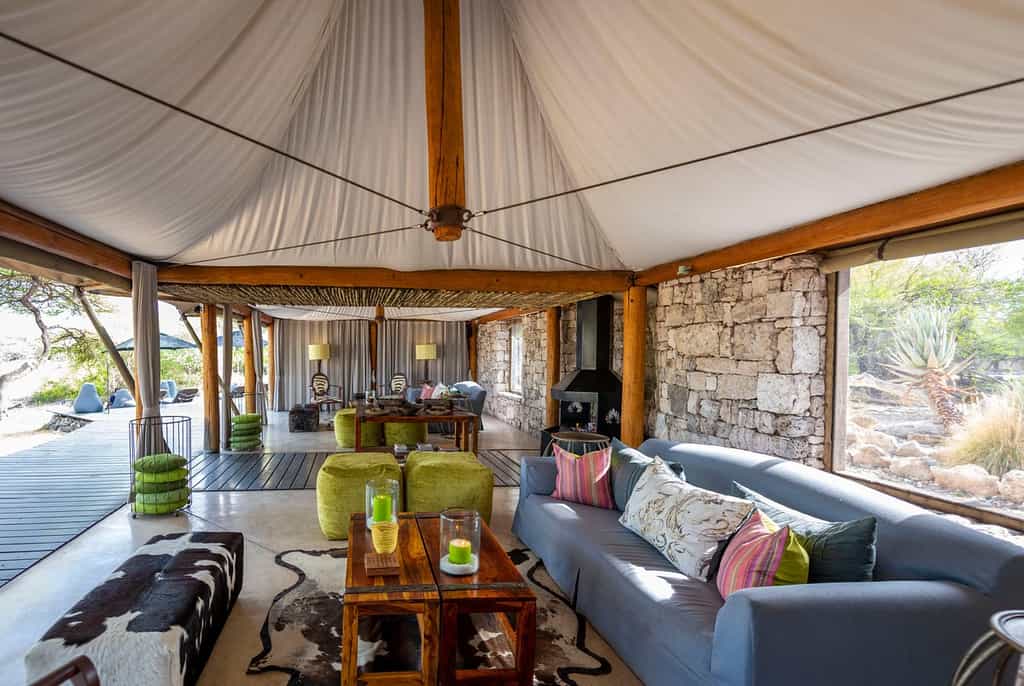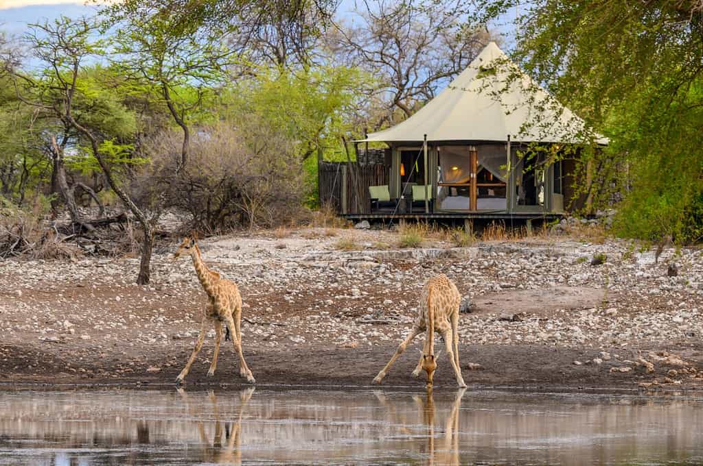 Activities include half- and full-day game drives in open 4x4 vehicles into Etosha National Park, sundowner drives on the reserve, guided walks, birding (look out for Namaqua sandgrouse, short-toed rock thrush, acacia pied barbet, double-banded courser and yellow-bellied eremomela) and spending time in hides.