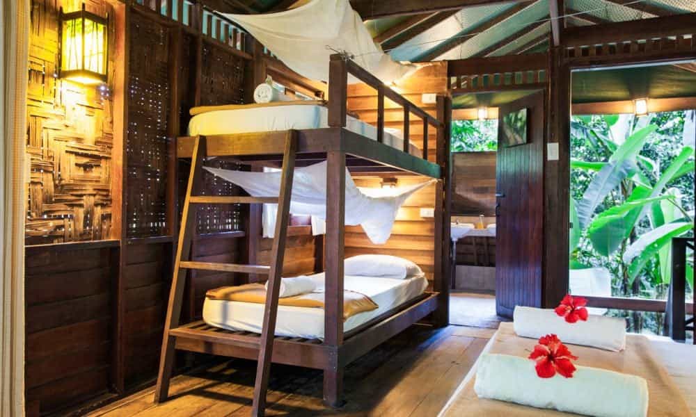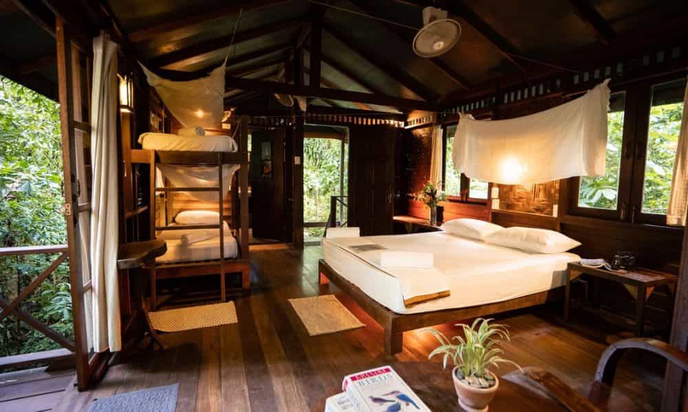 Embraced by the rainforest, our cluster of treehouses and bungalows blend nature and comfort for the quintessential jungle vacation. Each stand-alone treehouse or bungalow harmonizes with the natural setting. An open plan and spacious deck ensure you get up close and personal to nature whilst enjoying the comforts of your abode. Natural light pours through the windows and glass-paned doors, and the periodic breeze cools the living space without the use of air-conditioning. Interiors are kept simple and rustic but exude a homey feel. The mosquito bed nets keep pesky insects at bay as you slumber to the soothing sounds of the forest.