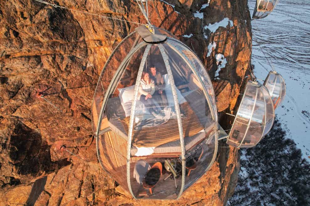 Guests can enjoy a spectacular views from a comfortable and safe living space inside a vertical wall at 270 meters high!