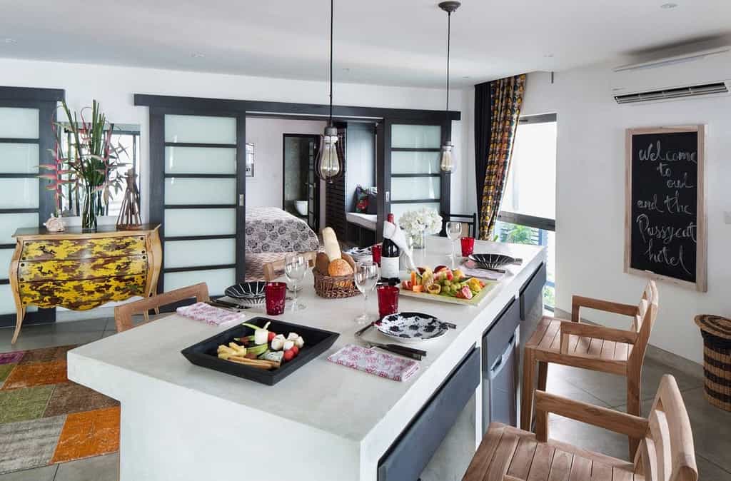 Each named after a 'character' from the poem, the rooms and suites are decorated in bespoke art and furniture with bright walls, floral textiles and plenty of unique flair. Differing in size, the rooms all have a balcony or patio where you can sip on a cup of Ceylon, while the larger suites offer an eclectic lounge area, dining table and small open-plan kitchen. You'll purposefully find no TV or entertainment system, but instead there are many, many books. Through sliding screens, the bathrooms are finished with polished concrete counters and rainfall showers.