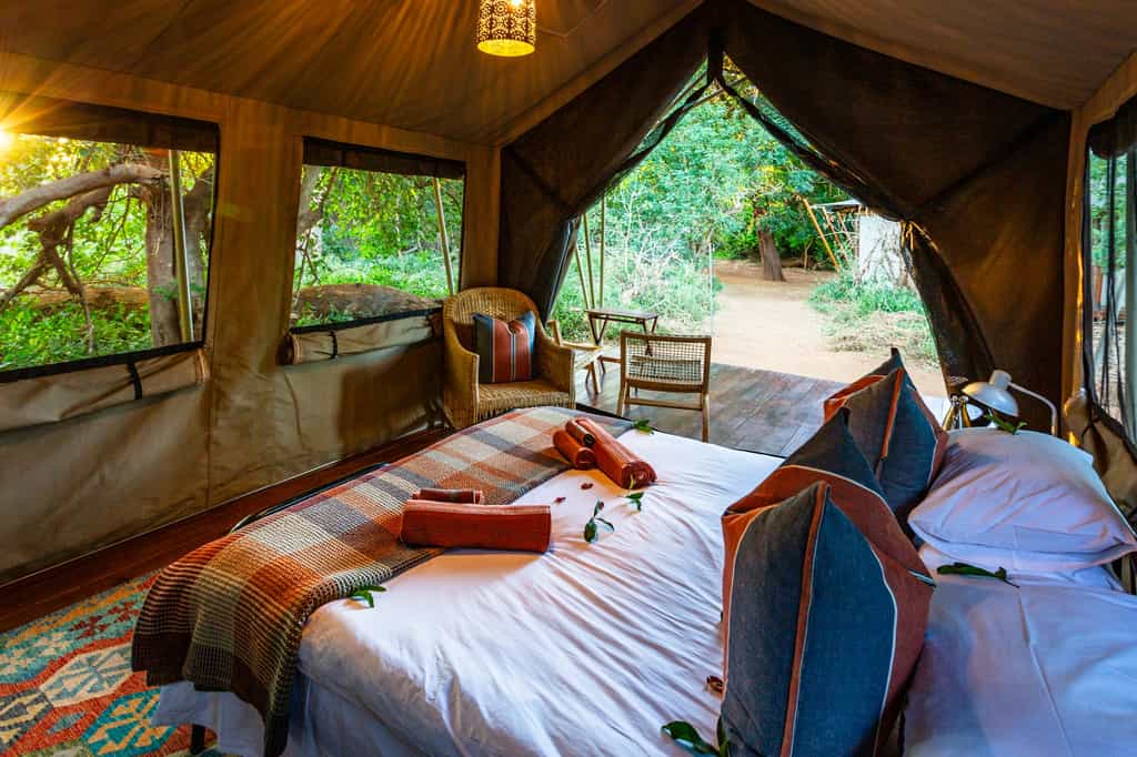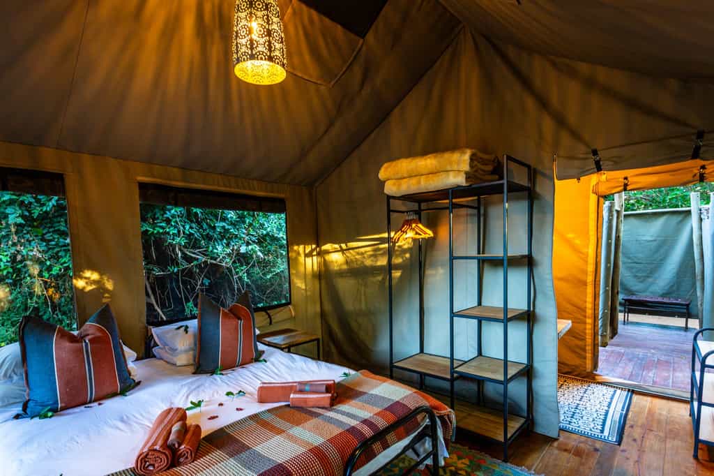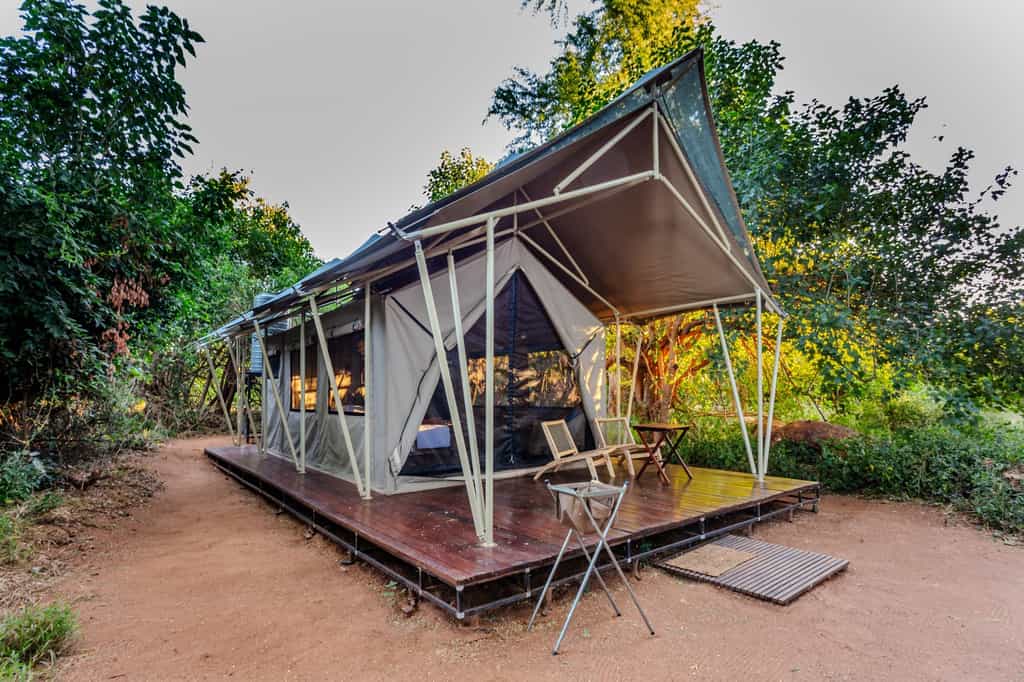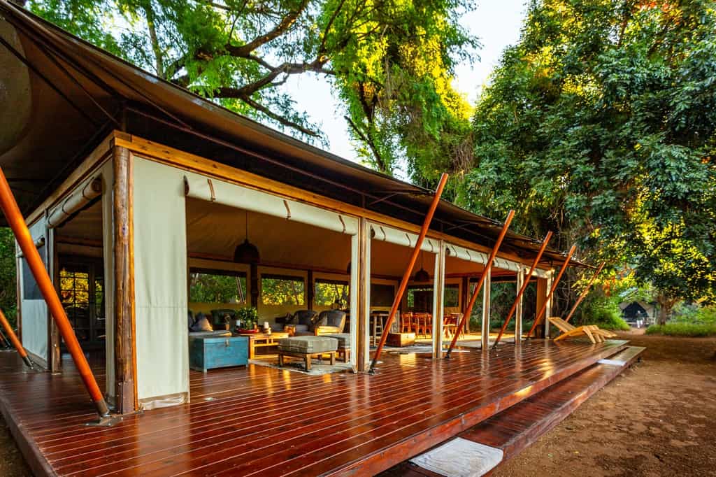 The Pafuri Trails Camp is located on the banks of Luvuvhu River in one of the wildest parts of the concession. The camp is all about getting you up close and personal to untamed Africa and although the facilities are simple, it’s the perfect setting for an intimate bush experience. Expect comfy, cushion-strewn sofas shaded by enormous tree branches, an open-air fire pit and a dinner table and mess tent under canvas. Meals are hearty, the bar is well-stocked and it’s the perfect place to return to at the end of a long day of exploring.