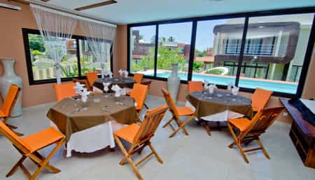 The Palm Resort is conveniently located within walking distance of the beach and just five minutes from the nearest airport. The villas at the Palm Resort have two or three bedrooms, large living rooms, dining rooms, and private bathrooms while the selection of rooms and suites are spacious, refined and equipped with all the facilities required for a comfortable stay. The trendy on-site restaurant serves inventive traditional cuisine, and a variety of alcoholic beverages can be enjoyed at the bar. There is also an outdoor swimming pool with a paddling pool for children, a hairdressing salon, beauty salon, sauna, and professional masseuse.