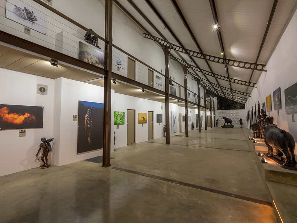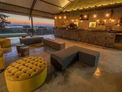 The lodge's hilltop location means sweeping views of the floodplains and river, and its furnished deck juts out to reveal even more of the vistas. The U-shaped lounge has a fire pit at its heart and a similarly shaped pool at its front (see it to believe it!). The photo-editing room has desk space for all, and the wide corridors are lined with artwork and photographs. Upstairs is a bar and lounge with stained-glass windows and views for days.