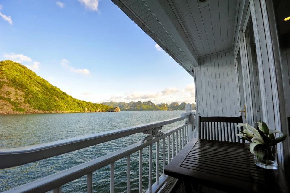 Each cabin is bright and stylish with massive linen-clad beds and wall-to-wall picture windows to enjoy the changing vistas. Decorated with painted scenes of Vietnam, the cabins come with a large TV and dining area, and all but the Junior Suites have a spacious balcony with rattan recliners. The sizeable bathrooms are decked out with a walk-in shower and spa tub. The ornate wardrobes provide plenty of storage space and other amenities include a tea/coffee maker, mini bar and air-con.