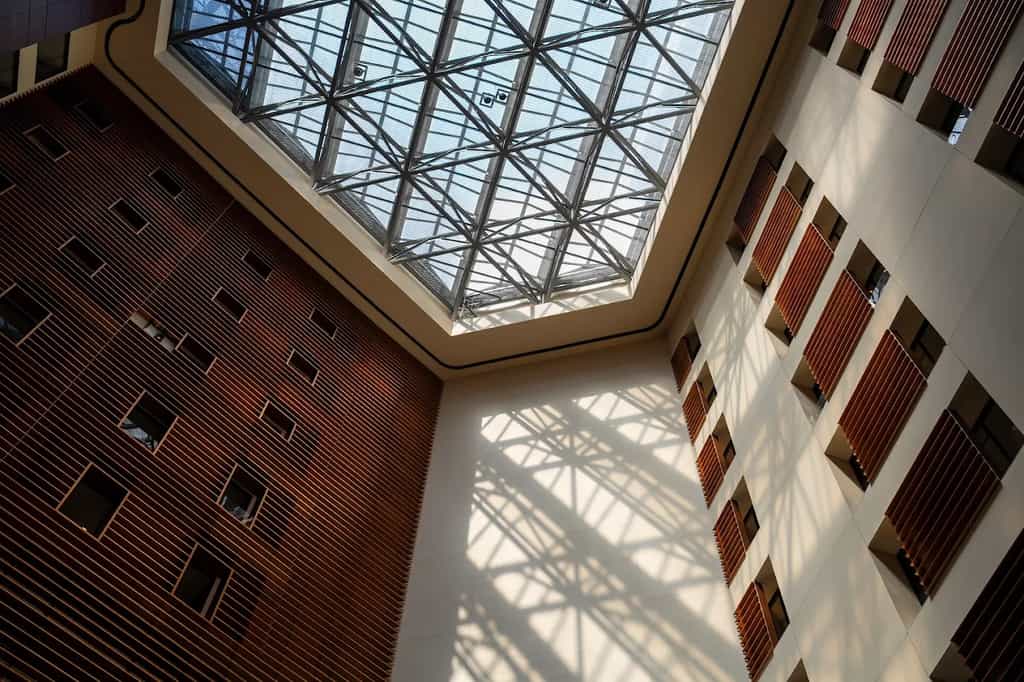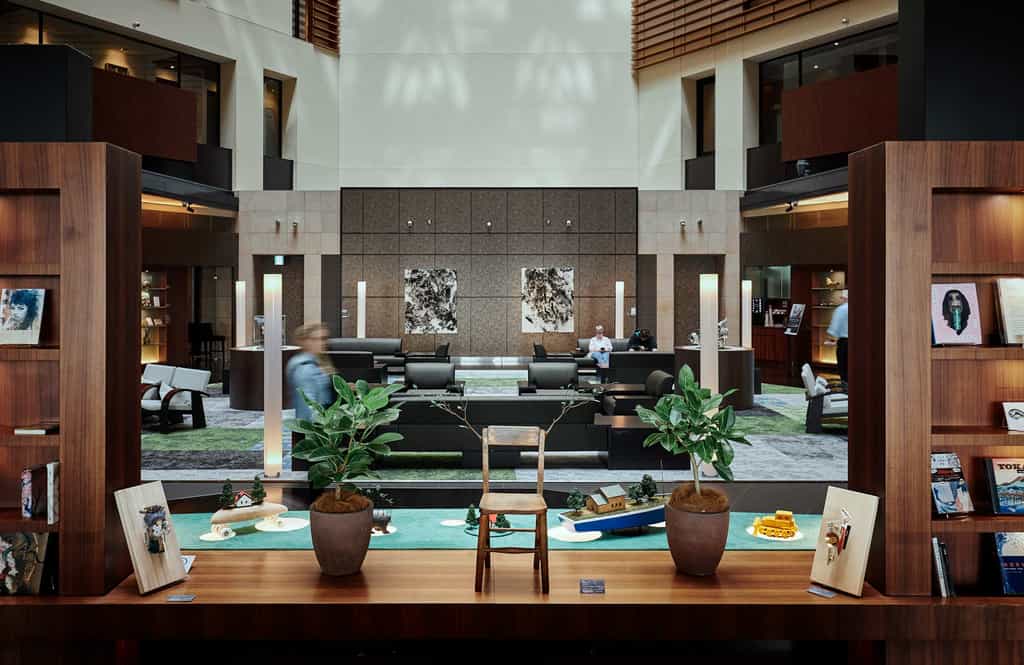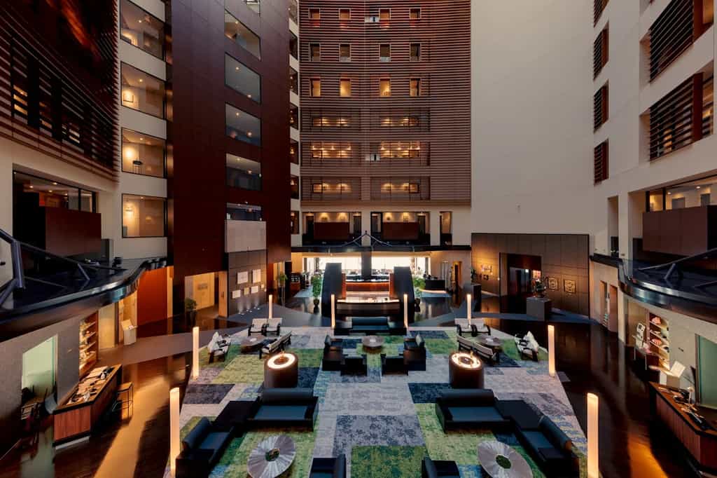 The hotel hosts revolving art exhibitions in the atrium, so be sure to take a look when you pass through.