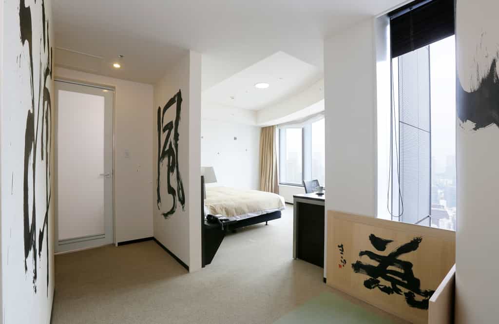 The majority of the rooms are neat and compact, the standout feature being the wide picture windows with views that range between Tokyo Tower, Tokyo Bay and Hamarikyu Park. The bathrooms are bright and pristine with aromatic amenities. In addition to the standard rooms, there is a single suite with huge, curving windows spanning the living room, a private wine cellar, and a vast King-size bed. On the 31st floor, each room is being turned into a work of art by a contemporary Japanese artist with themes including the Geisha Goldfish, Haiku and a host of other evocative titles.