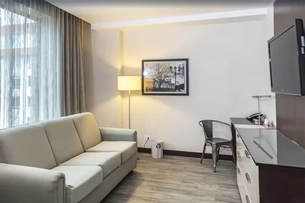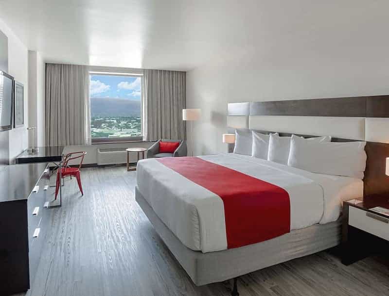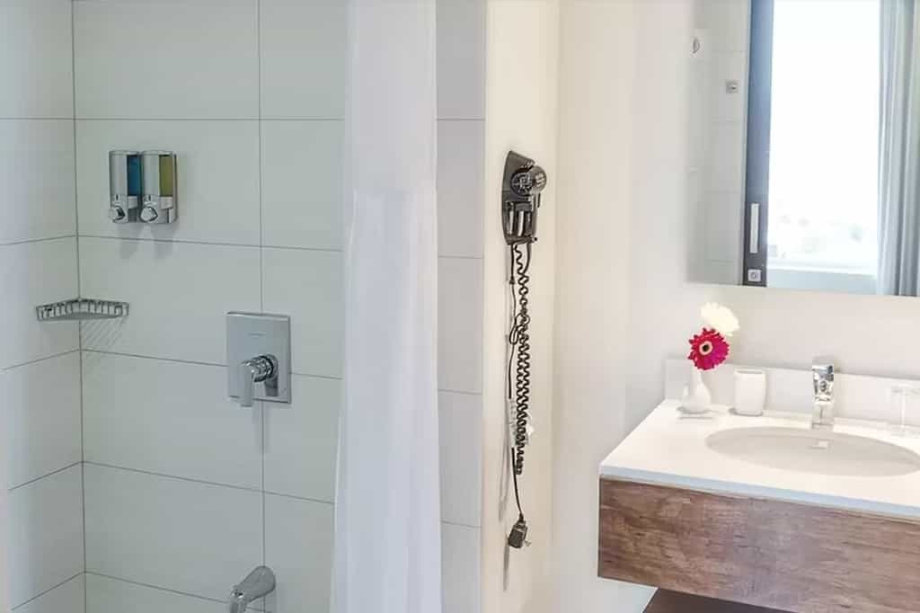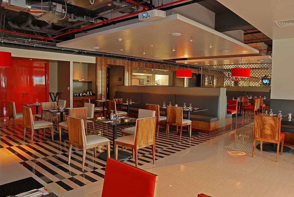 The Park Inn has 117 rooms across multiple floors, with views that appreciate with height. Wide picture windows let in plenty of natural light and bed runners offer a pop of colour in a palette of greys and creams. The rooms have two queens or one King-size bed , topped with orthopaedic mattresses for total comfort. Other amenities include complimentary Wi-Fi, a plasma TV and coffee maker. The bathrooms are functional and pristine with a spacious shower (but no tub). The suites feature a lovely lounge and dining area as well.