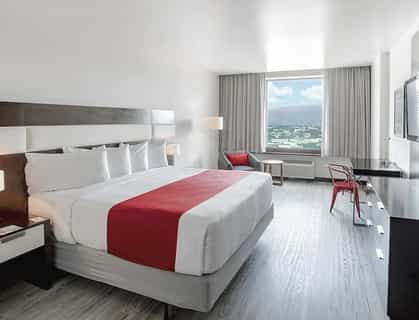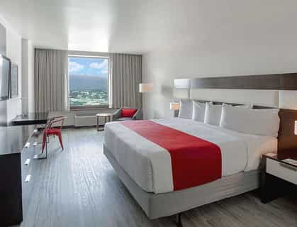 With sleek black and wood hardware, the RBG Bar & Grill offers a selection of international fare and Costa Rican specialties. Their complimentary buffet breakfast is delicious and includes favourites like gallo pinto. The bar is low-key, perfect for afternoon drinks or an evening rendezvous, and the hotel also boasts a state-of-the-art gym and outdoor pool for a dip or a laidback few hours on a lounger.